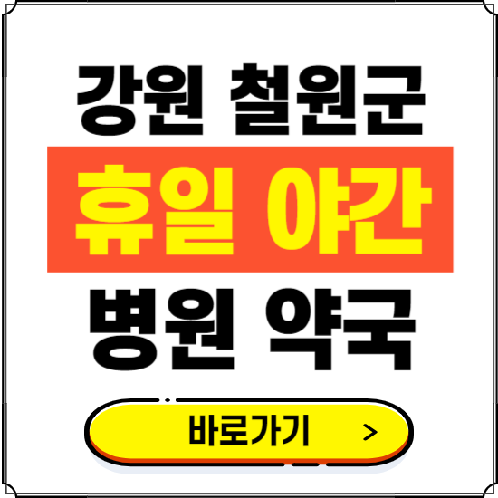 강원 철원군 지역에 야간 또는 24시간, 일요일, 휴일, 공휴일에 진료하는 병원, 약국 정보를 알고 계신다면 비상시에 유용하게 사용할 수 있습니다.
