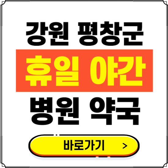 강원 평창군 지역에 야간 또는 24시간, 일요일, 휴일, 공휴일에 진료하는 병원, 약국 정보를 알고 계신다면 비상시에 유용하게 사용할 수 있습니다.