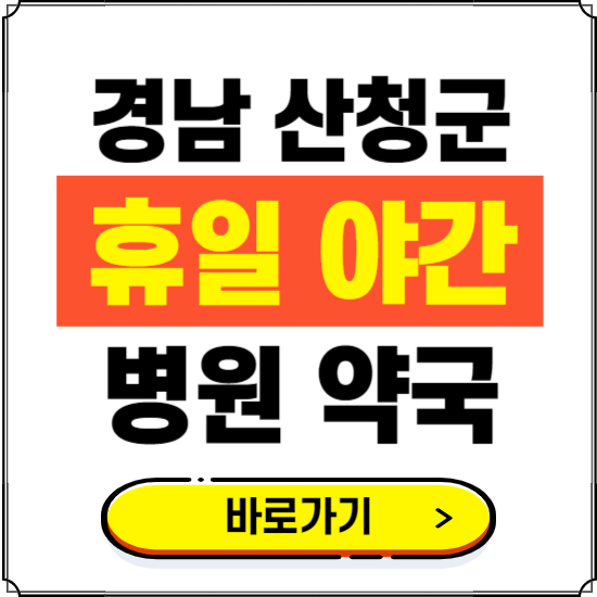 경남 산청군 지역에 야간 또는 24시간, 일요일, 휴일, 공휴일에 진료하는 병원, 약국 정보를 알고 계신다면 비상시에 유용하게 사용할 수 있습니다.