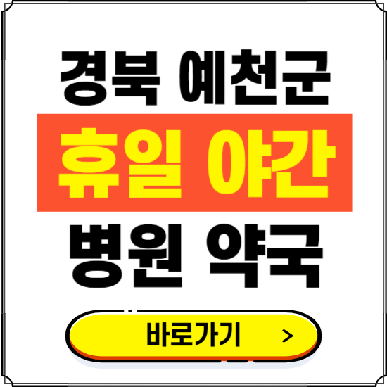 경북 예천군 지역에 야간 또는 24시간, 일요일, 휴일, 공휴일에 진료하는 병원, 약국 정보를 알고 계신다면 비상시에 유용하게 사용할 수 있습니다.