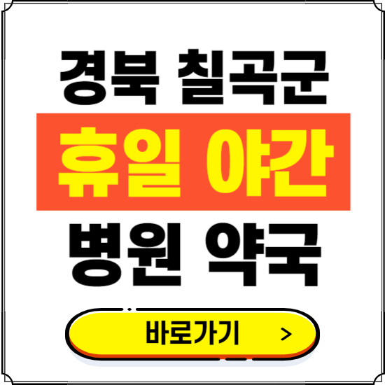 경북 칠곡군 지역에 야간 또는 24시간, 일요일, 휴일, 공휴일에 진료하는 병원, 약국 정보를 알고 계신다면 비상시에 유용하게 사용할 수 있습니다.