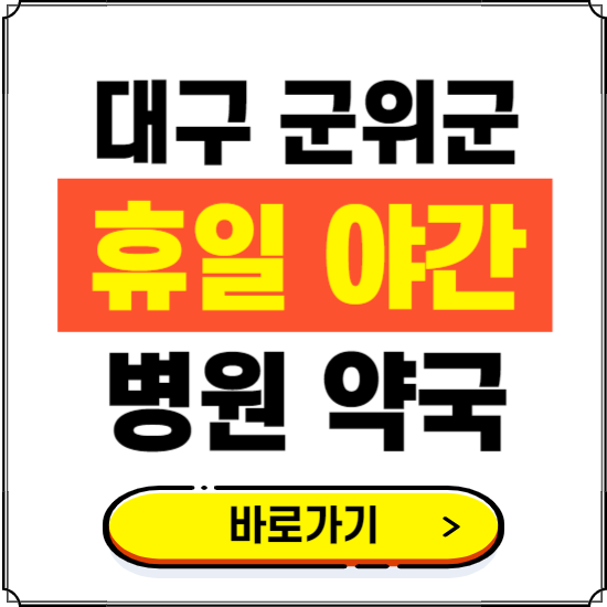 대구 군위군 지역에 야간 또는 24시간, 일요일, 휴일, 공휴일에 진료하는 병원, 약국 정보를 알고 계신다면 비상시에 유용하게 사용할 수 있습니다.