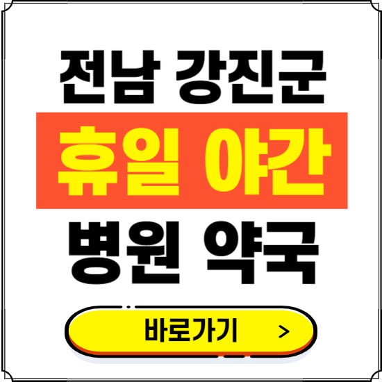 전남 강진군 지역에 야간 또는 24시간, 일요일, 휴일, 공휴일에 진료하는 병원, 약국 정보를 알고 계신다면 비상시에 유용하게 사용할 수 있습니다.