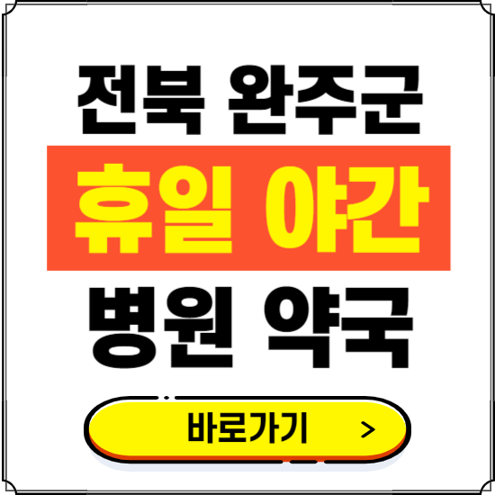 전북 완주군 지역에 야간 또는 24시간, 일요일, 휴일, 공휴일에 진료하는 병원, 약국 정보를 알고 계신다면 비상시에 유용하게 사용할 수 있습니다.