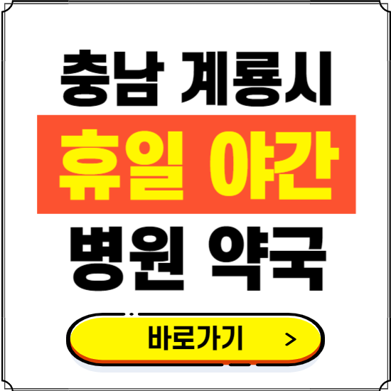 충남 계룡시 지역에 야간 또는 24시간, 일요일, 휴일, 공휴일에 진료하는 병원, 약국 정보를 알고 계신다면 비상시에 유용하게 사용할 수 있습니다.