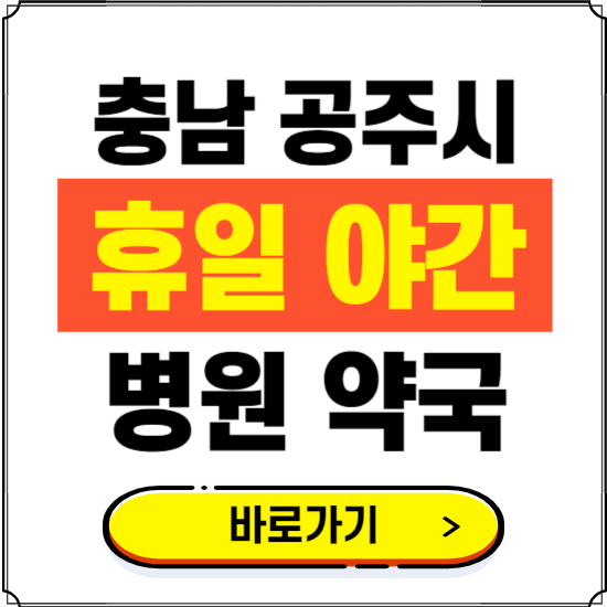 충남 공주시 지역에 야간 또는 24시간, 일요일, 휴일, 공휴일에 진료하는 병원, 약국 정보를 알고 계신다면 비상시에 유용하게 사용할 수 있습니다.